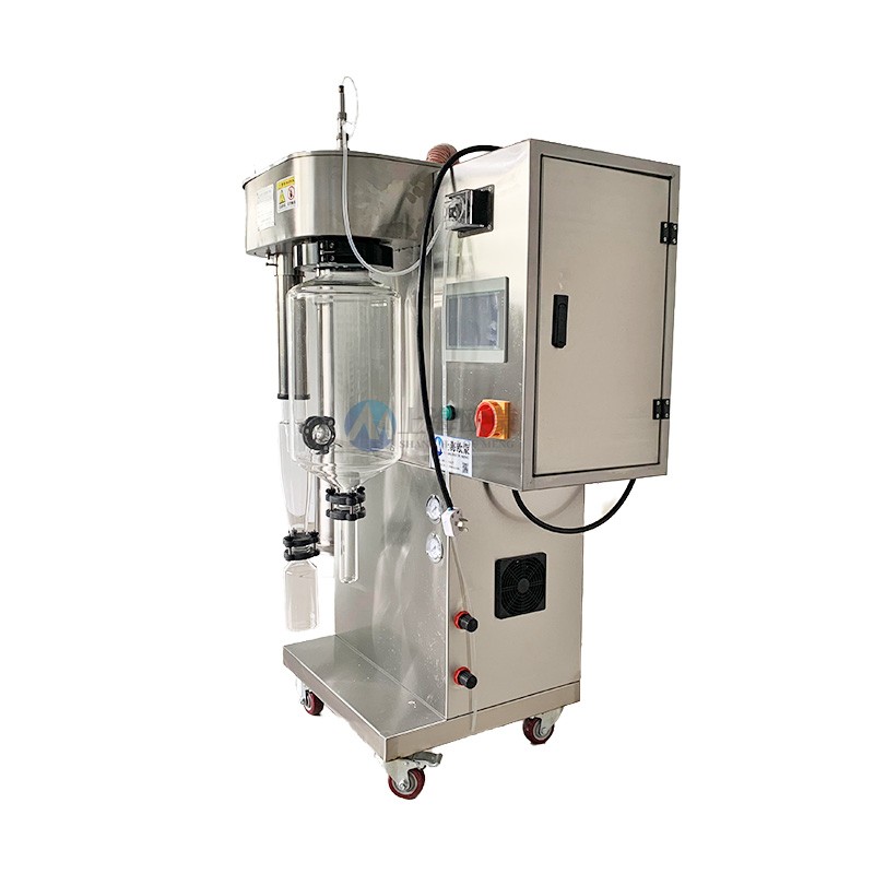 適用于高校、研究所和食品醫藥化工企業實驗室生產微量顆粒粉末,對**溶液如乳濁液、懸浮液具有**適用性, 適用于對熱敏感性物的干燥如生物制品、生物農藥、酶制劑等。因為所噴出的物料只是在噴成霧狀時才受到高溫且是瞬間受熱,故這些活性材料在干燥后仍維持其活性成份不變。